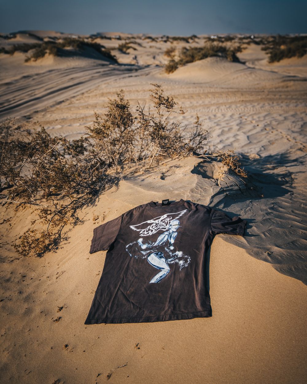 空山基氏の作品を元に、©SAINT Mxxxxxxが今回のためにデザインしたグラフィックを手作業でプリントしたTシャツとスウェットがラインナップ。