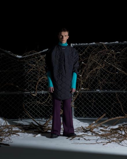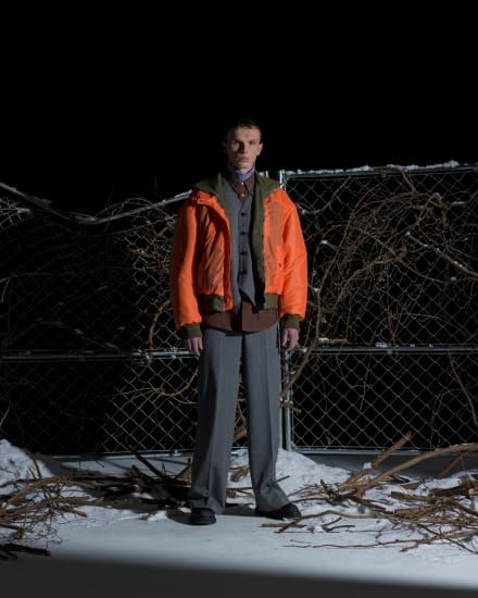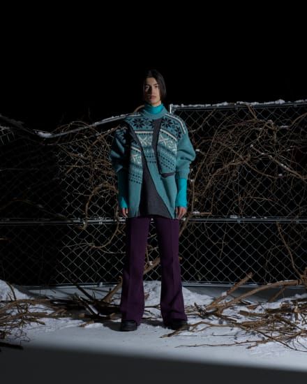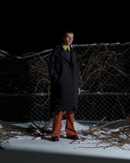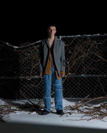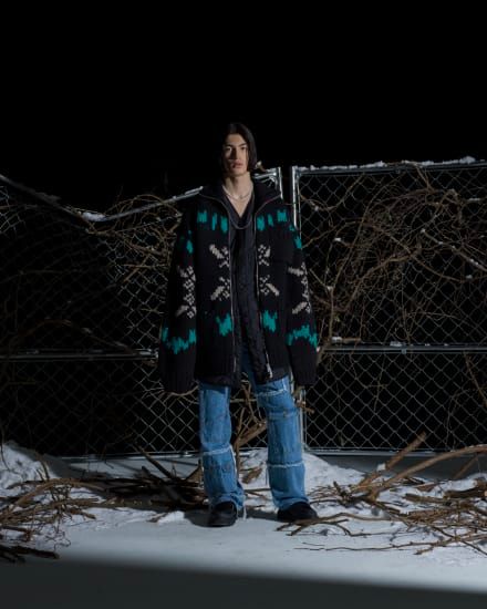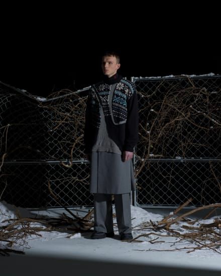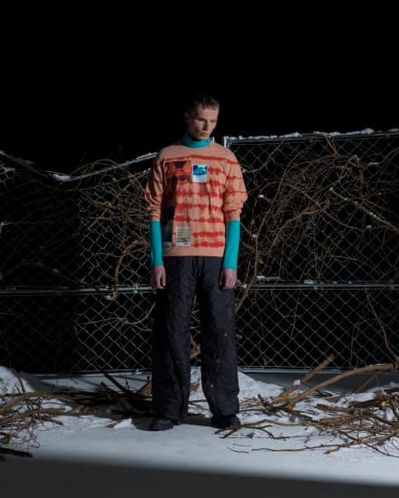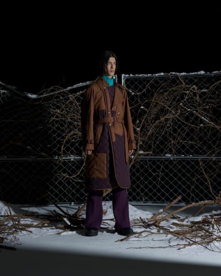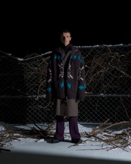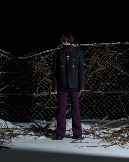 デザイナーである橋本ユウキ氏が過ごした滋賀県が舞台になっており、幼少期の記憶からインスピレーションされています。祖父が良く着ていたボンバージャケットやノルディック柄のニットなど80年代,90年代を思い出させるコレクションになっています。今シーズンのメインコレクションをどうぞご覧になられてみて下さい。