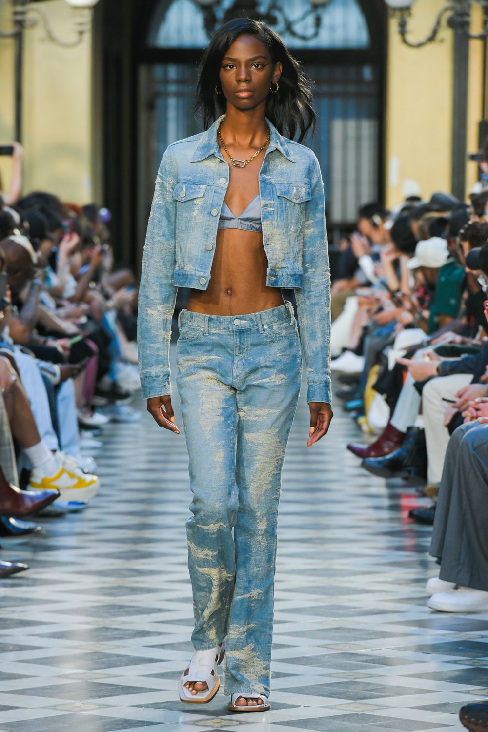 ヴィンテージデニムの経年変化を柄として織り込んだTAAKK定番素材の デニム