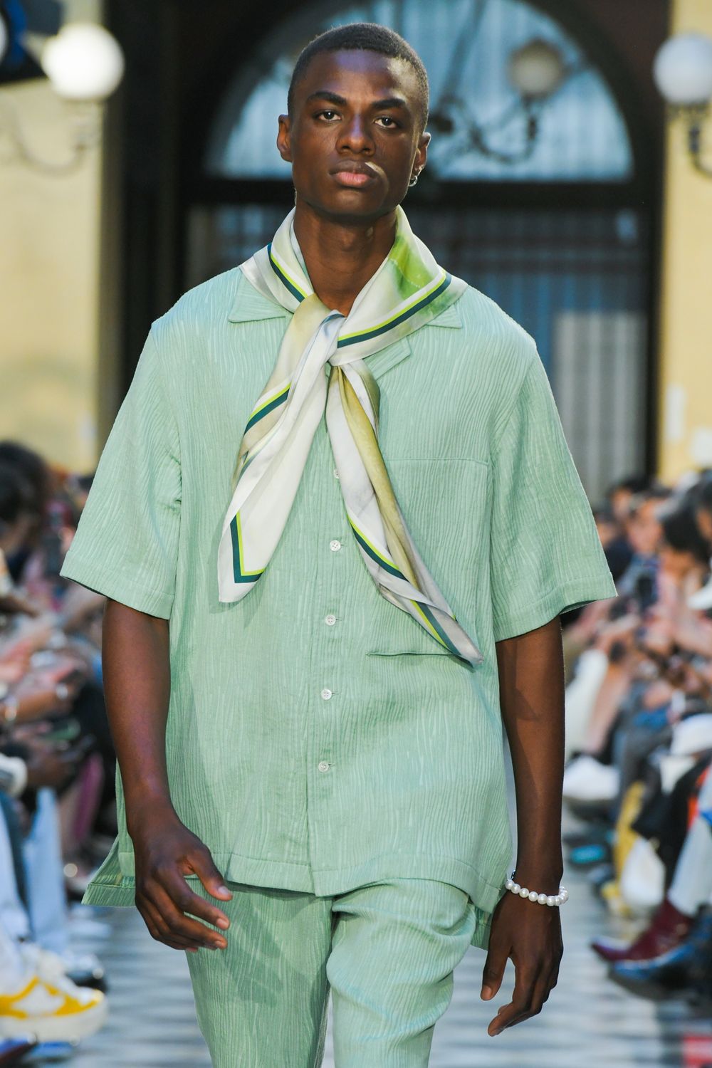 楊柳の畝をジャガード織で表現したオリジナル素材