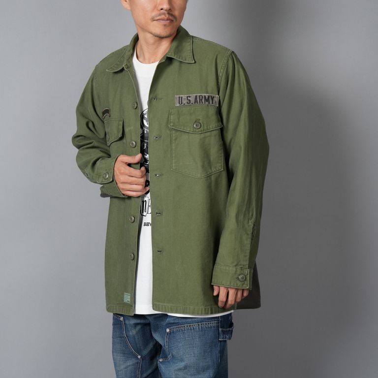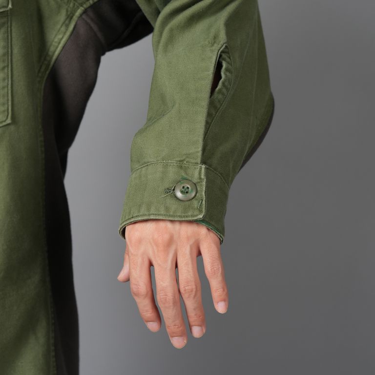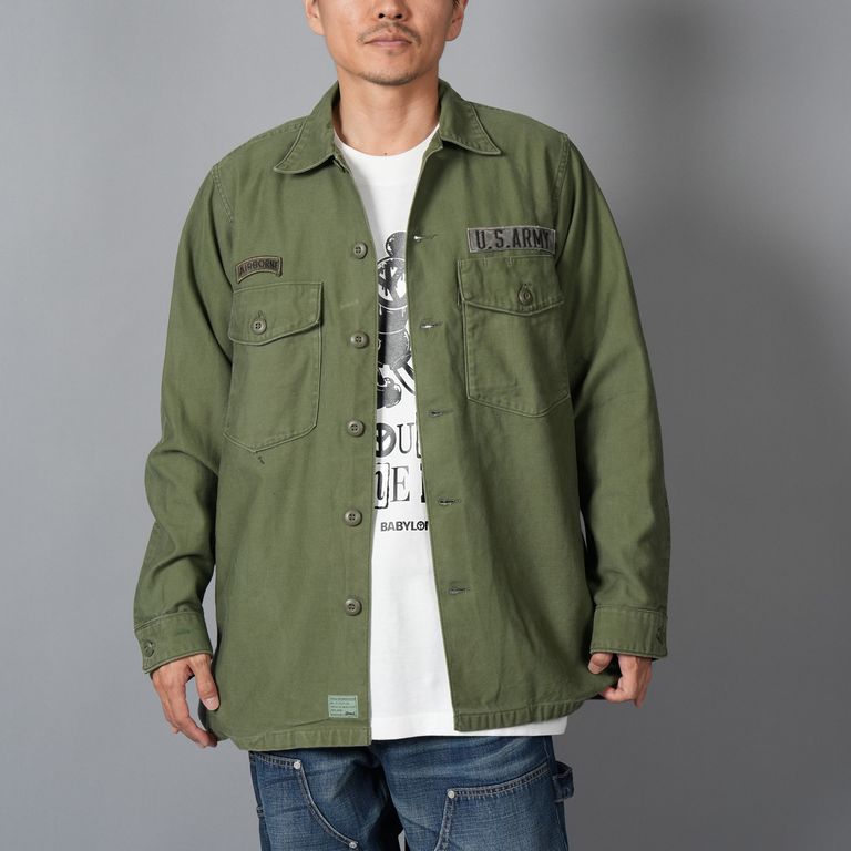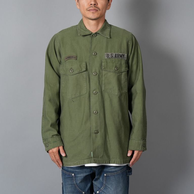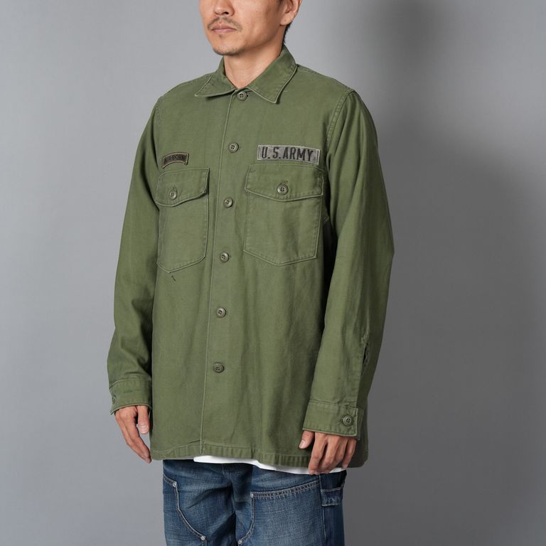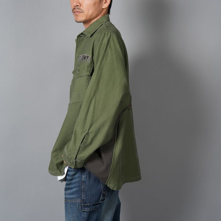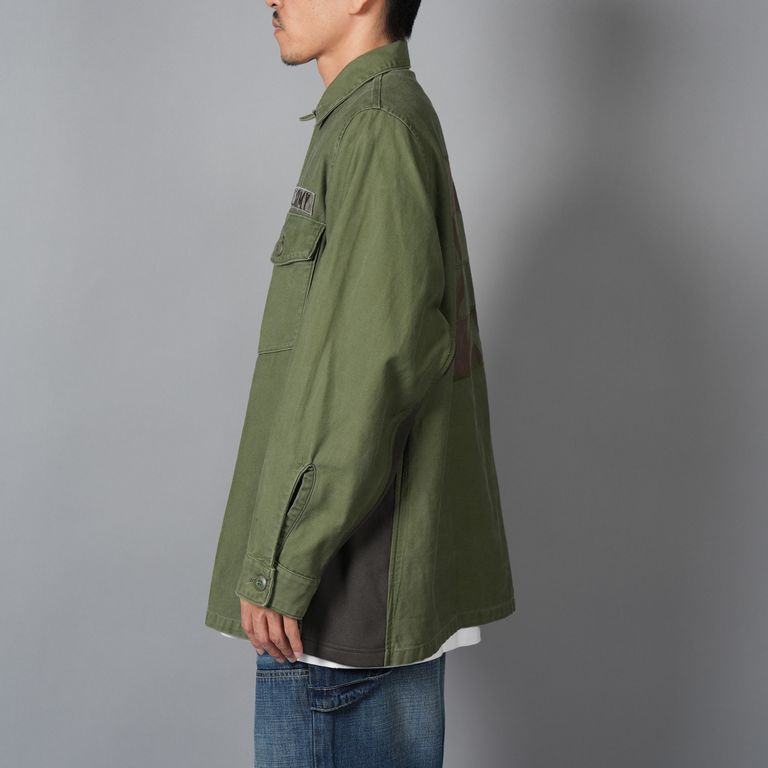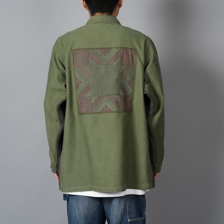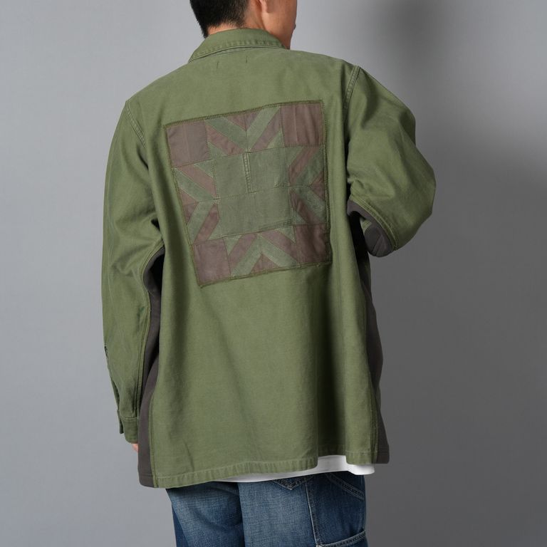 【ラスト1点】Patchwork US Army Utility Shirts / パッチワーク ユーエス アーミー ユーテリティシャツ [古着リメイク](カーキ)