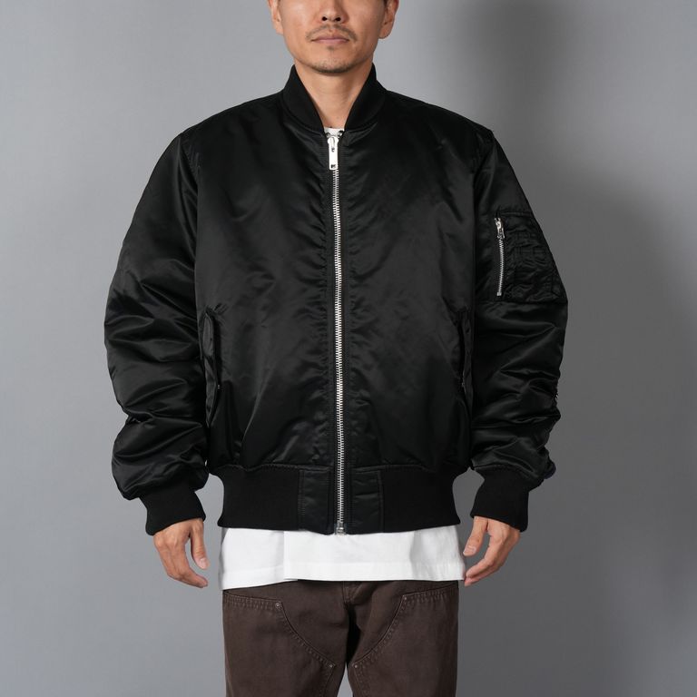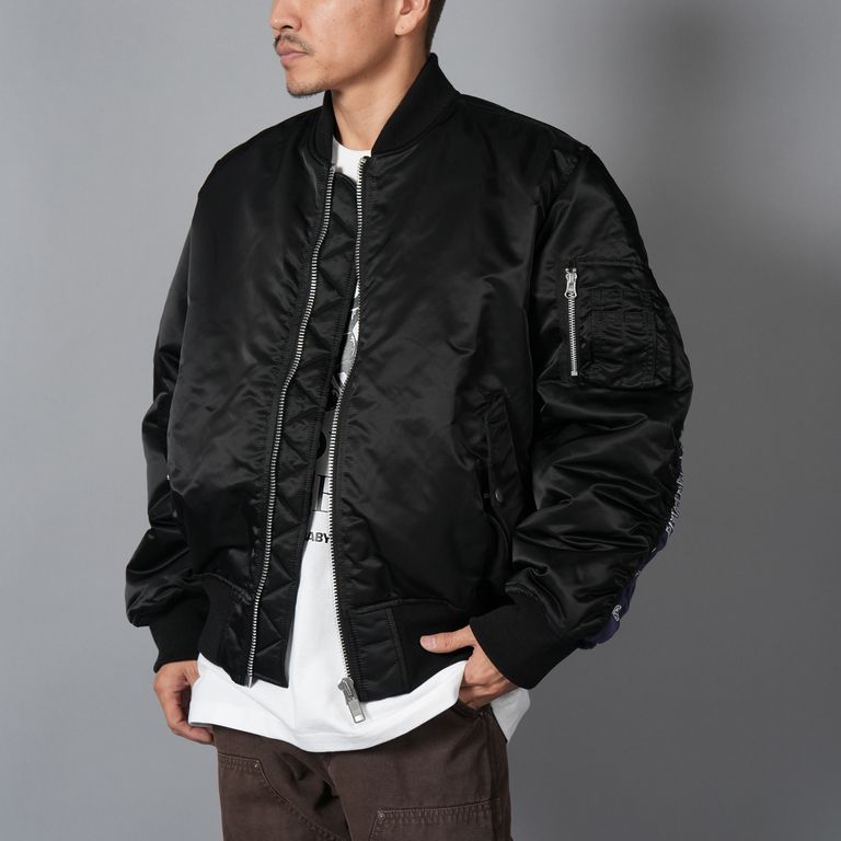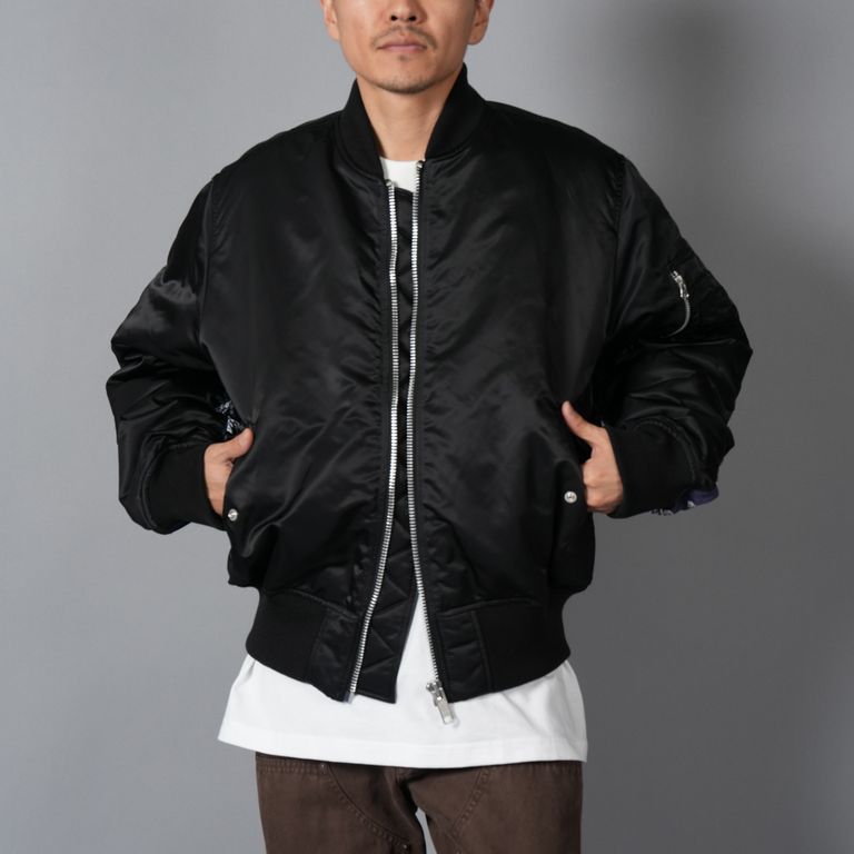 フロントのメタルジップやリブ仕様の裾・袖口など、王道のフライトジャケットディテールをベースにしながら、ヴィンテージとストリートの要素をミックスしたMIYAGI HIDETAKAらしい一着に仕上がっています。