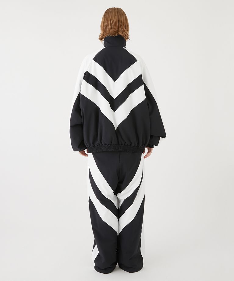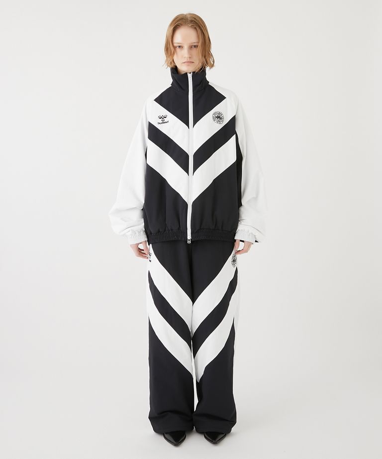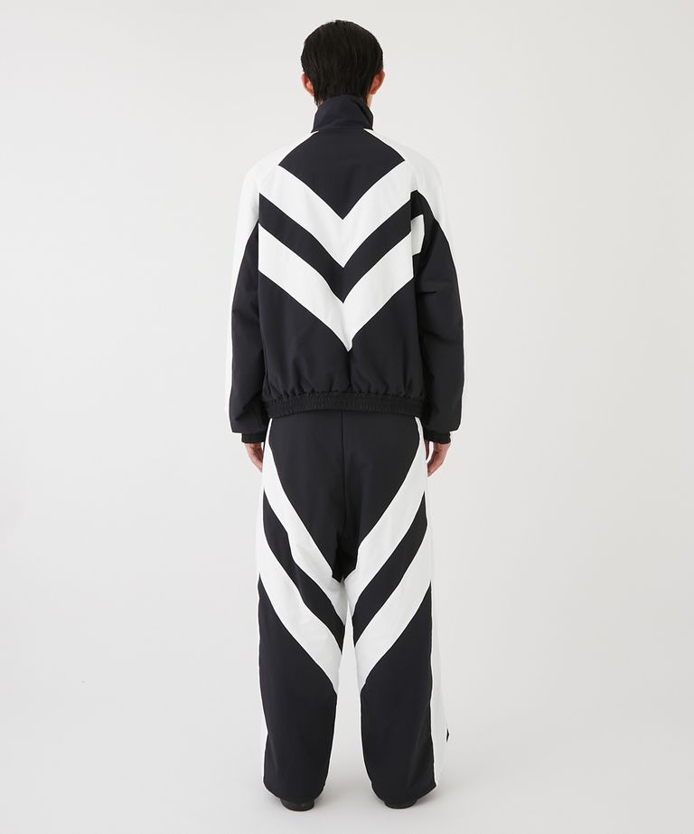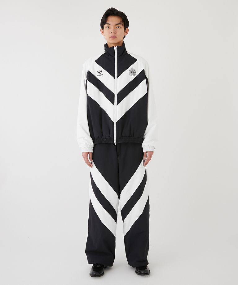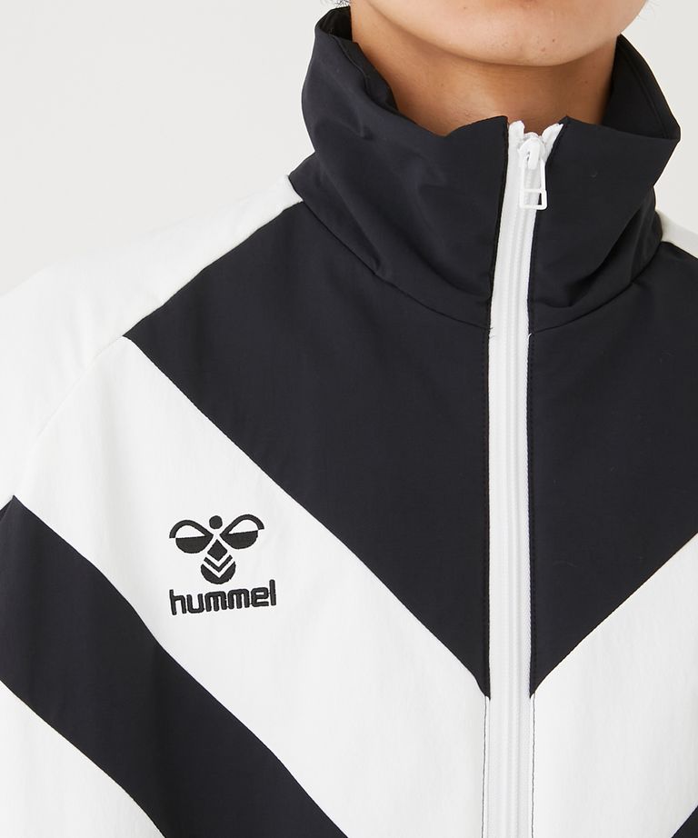 耐摩擦性、撥水性、ウォッシャブル性を兼ね備 えたCORDURAを使用したパファージャケット。右にはヒュンメルのロゴを、左にはアーカイブの刺繍を施しました。フロントはシェブロンをイメージしたディテール でヒュンメルらしいアイテムに。