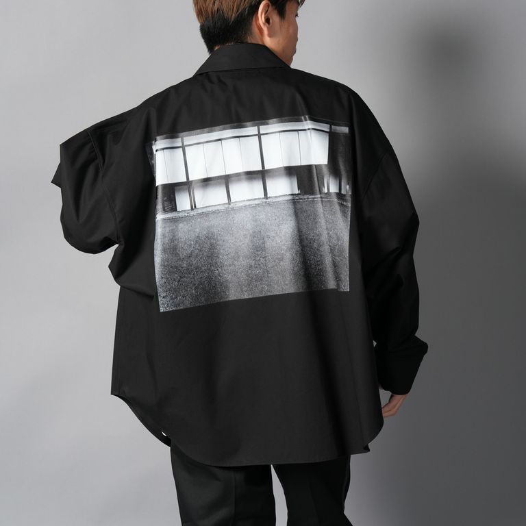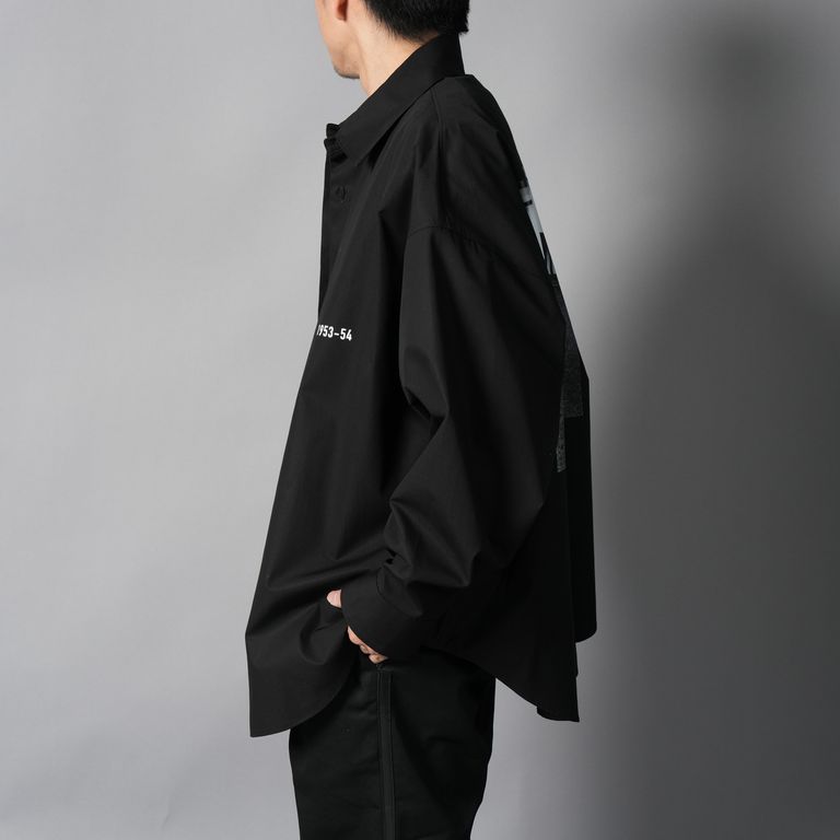 【YASUHIRO ISHIMOTO】WOEVEN KIMONO SLEEVE PRINT SHIRTS / キモノ スリーブ プリントシャツ(ブラック)