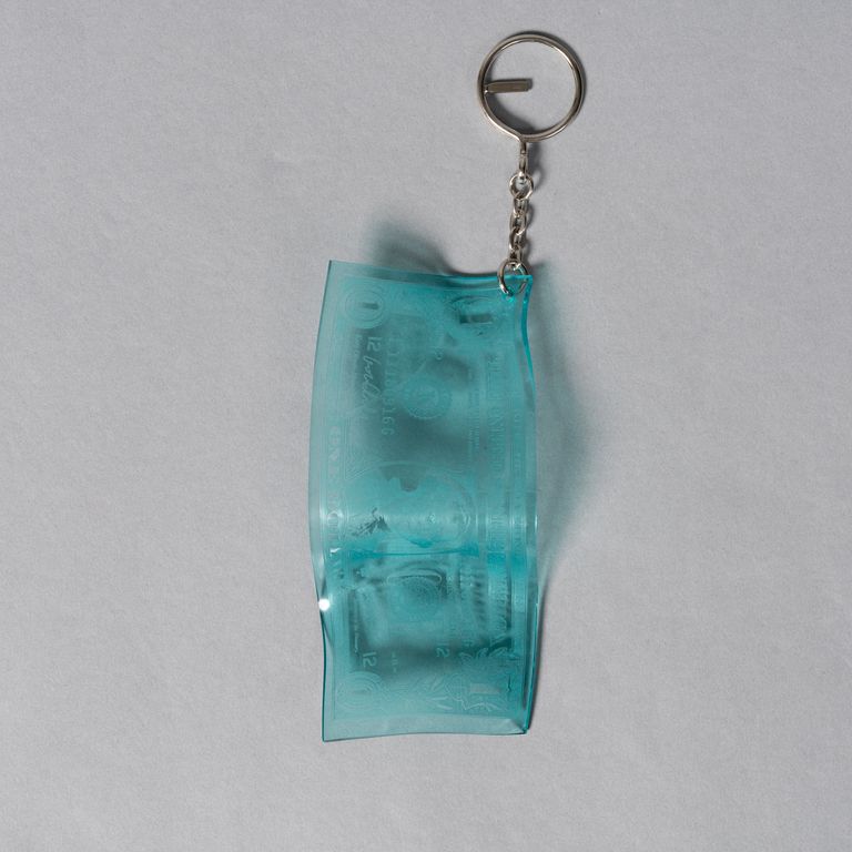 “ONE DOLLAR”という日常の記号を、透明樹脂に閉じ込めてアクセサリーへ変換したKOTA OKUDAのシグネチャー。
