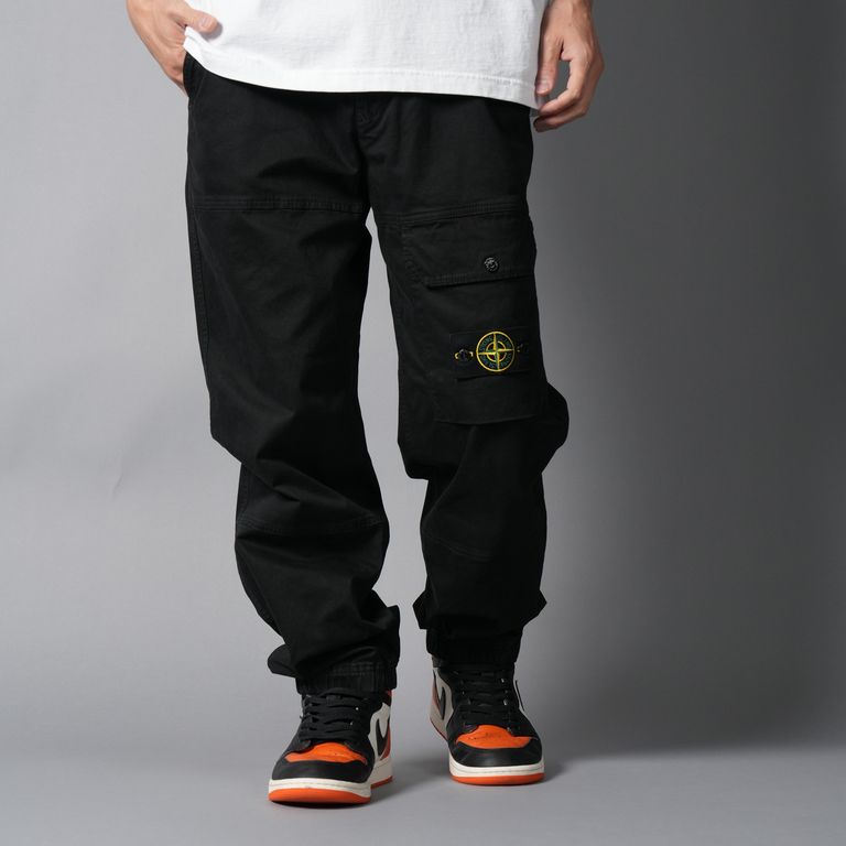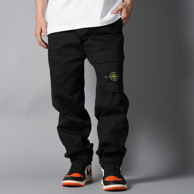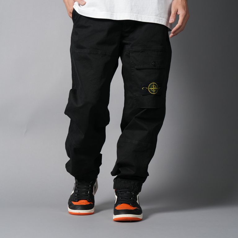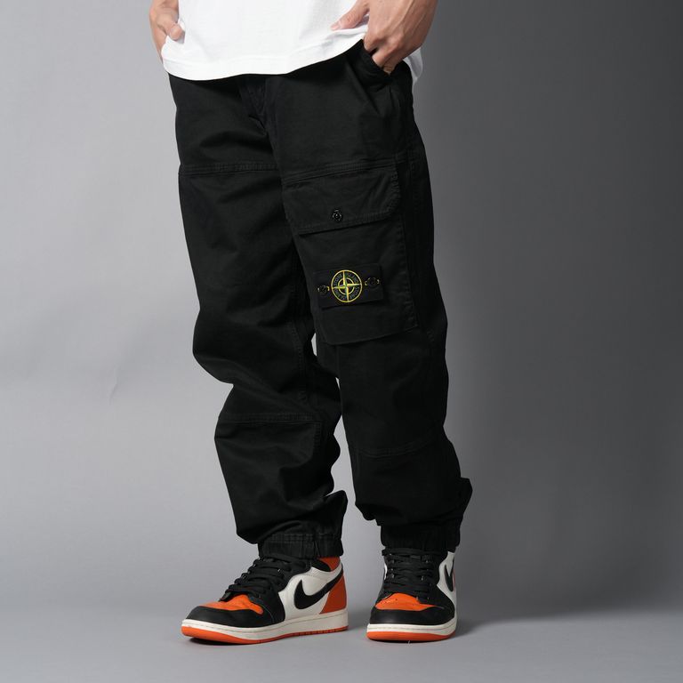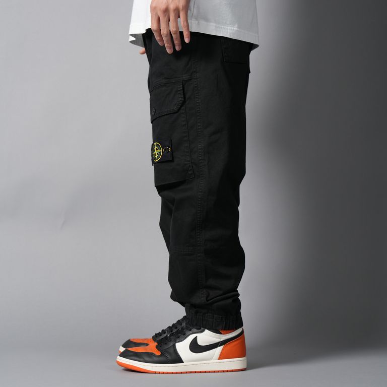 3100010 ORGANIC COTTON STRETCH BROKEN TWILL 'OLD' EFFECT / カーゴパンツ (ガーメントダイ) (ブラック)