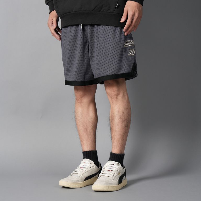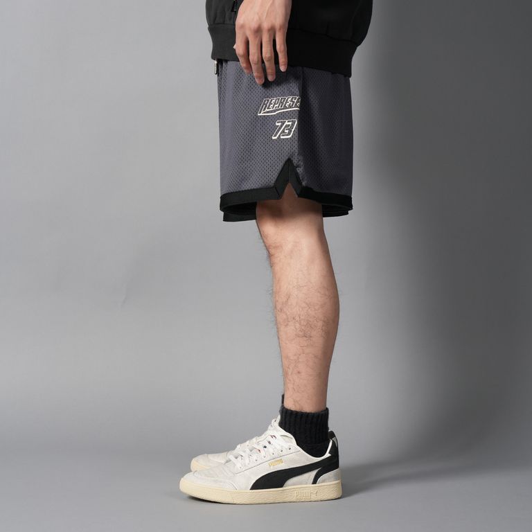 PUMA × REPRESENT “WORLD CHAMPIONS” コレクションのメッシュショーツ。通気性の良いメッシュ素材に、ロゴ&ナンバリングを効かせたスポーツムード全開の一本です。