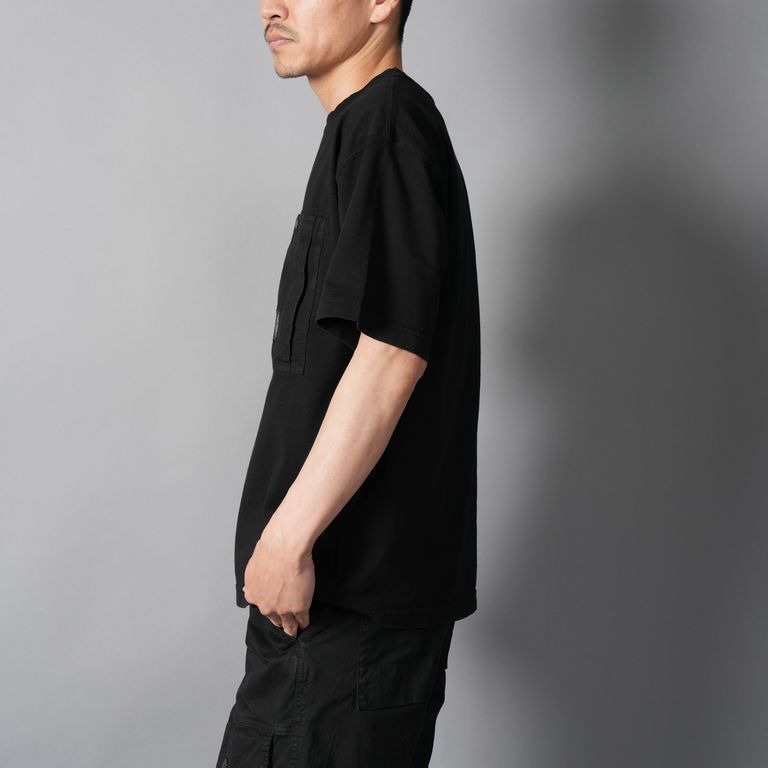 コーマ糸の上質なオーガニックコットンジャージーを使用した、ショートスリーブのTシャツ。今シーズンならではのコットンリップストップ製ポケットを配したデザインです。ガーメントダイ。