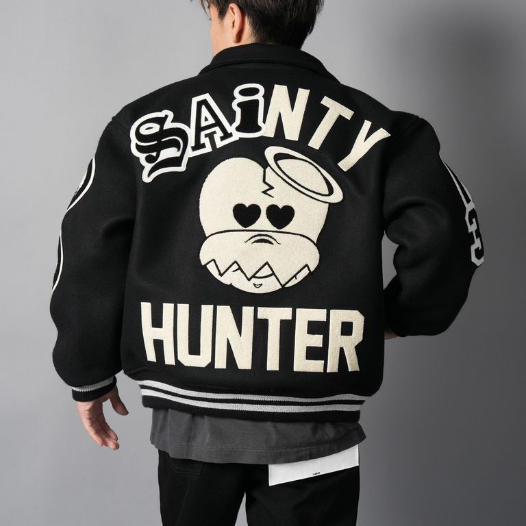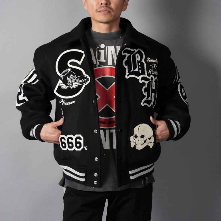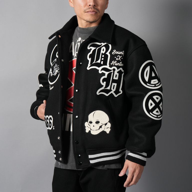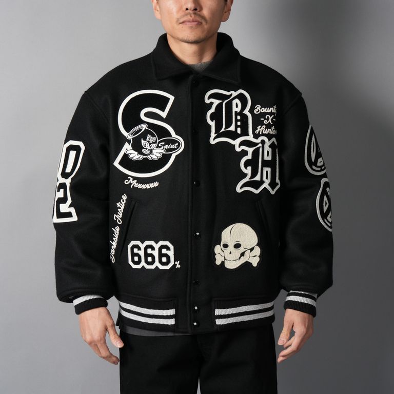 【残りわずか】【コラボ】SM-MK8-0000-C34 / BH_VARSITY JKT / SNT HUNTER / BLK / スタジャン (ブラック)