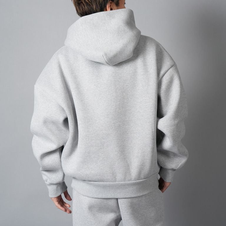 シルエットは、V2 Seventhを象徴する定番のフォルム。丸みを持たせつつ、輪郭をしっかりと際立たせた立体感のある仕上がりが特徴です。610GSMのヘビーウェイトなコットンブレンド生地を採用することで、しっかりとした存在感と心地よい着用感を両立。さらに、独特なドロップショルダーがほどよい抜け感を生み、一枚でも雰囲気よく着用いただけます。